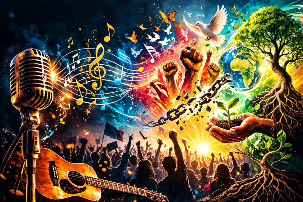 Vous avez choisi un style de musique au hasard. Cliquez sur 🎵 Chansons engagées en haut de la page pour accéder aux différentes œuvres.